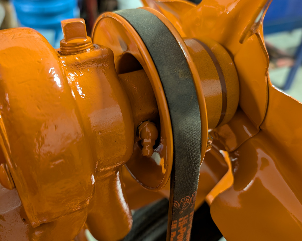 The pulley just clears the grease zerk