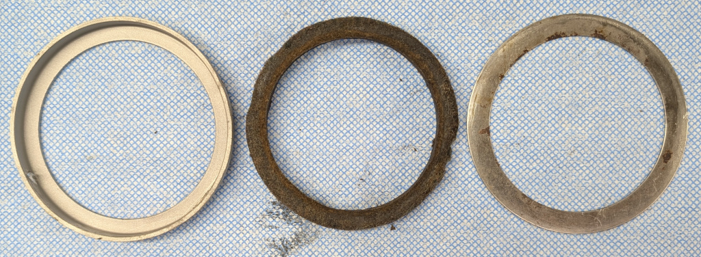 Two small screws hold the seal in place. What we see with the seal removed.