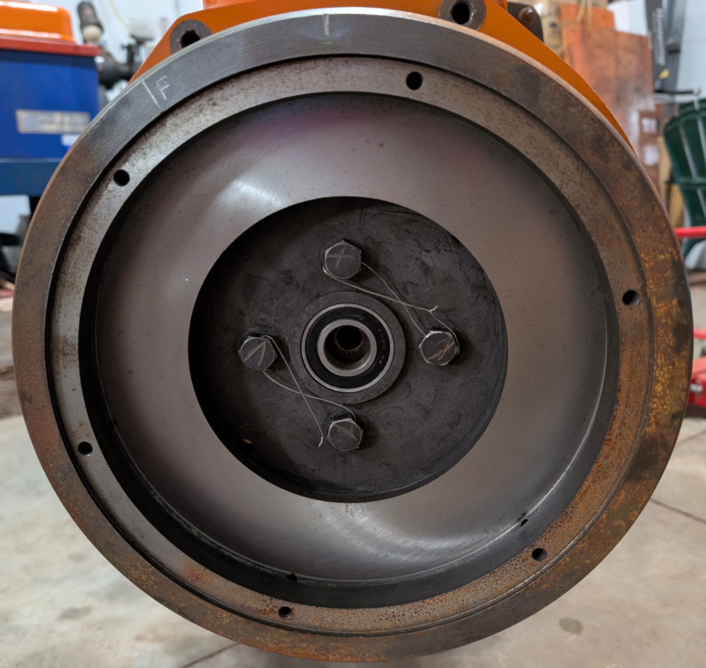 And the flywheel cover plate is mounted