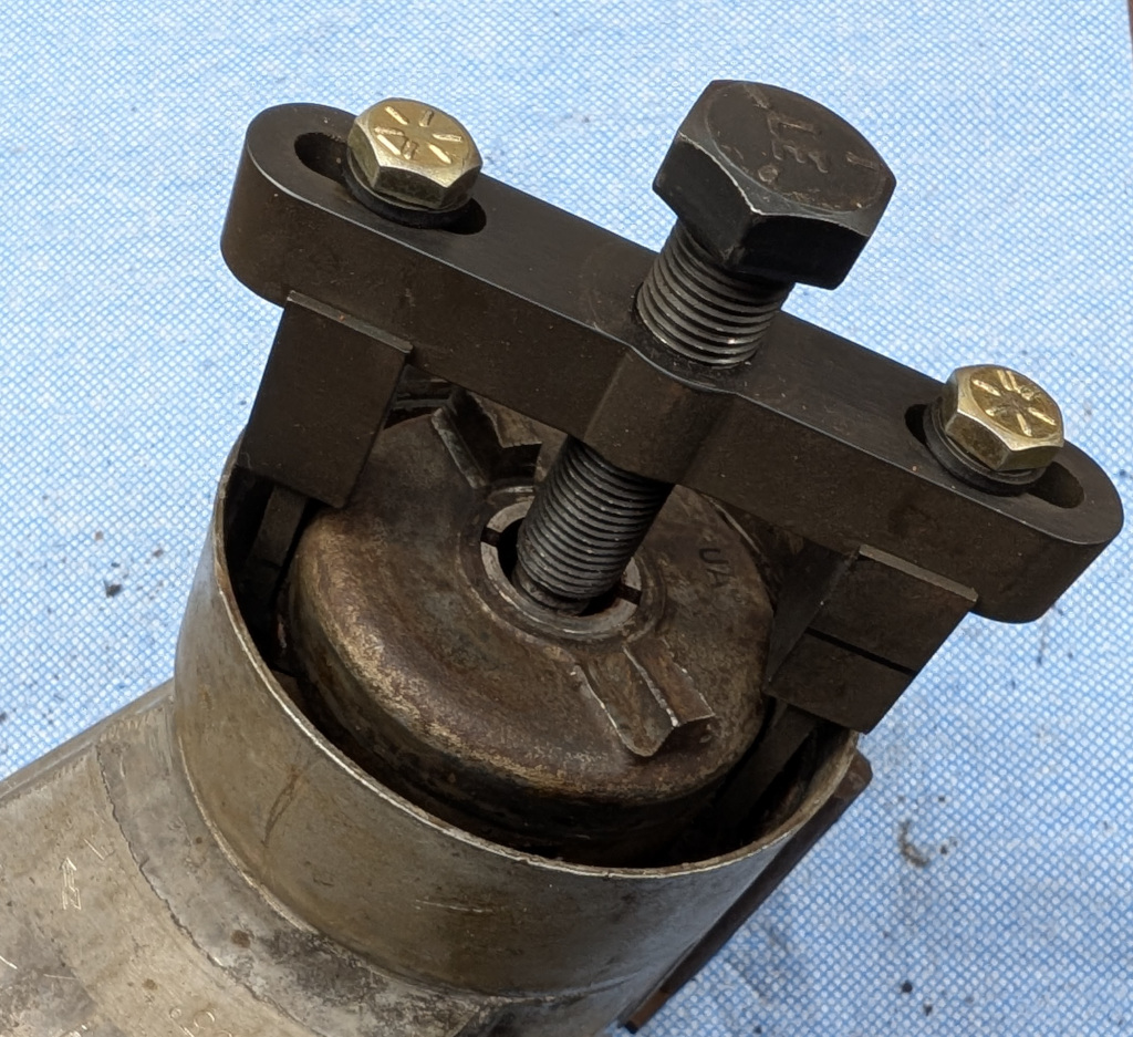 With the nut removed the Agrimson Tool Company Impulse Puller can be used