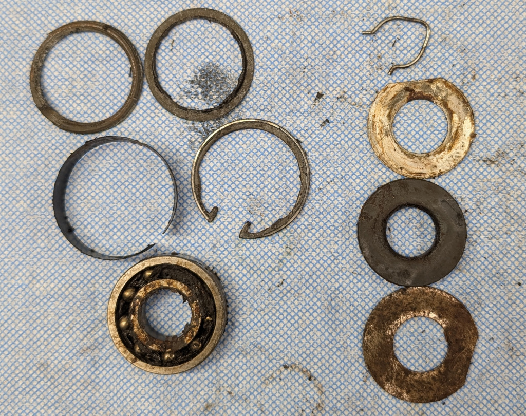 The paper insulators that surround the bearing and the clips and seals that need to ne removed and cleaned